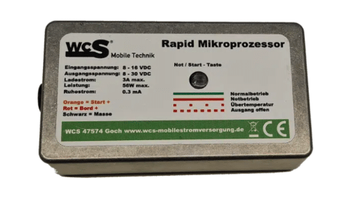 Der Rapid taktet zwischen 12,2V und 12,8V hin und her. Er hält die Startbatterie auf 12,8V. Die Problematik ist, dass wenn Fahrzeuge für einen längeren Zeitraum z.B. in eine Halle abgestellt werden, oft nicht mehr starten können da die Batteriespannung zu niedrig ist. Das kommt dadurch, dass sogenannte Blindströme durch das Fahrzeug fließen (zwischen 30 und 70 mAh). Der Rapid ist dafür entwickelt worden, um sich Strom aus der Aufbaubatterie zu holen. Auch das kann dieser natürlich nicht unbegrenzt machen, aber so kann man schon einige Monate problemlos überbrücken. Den Aufbau kann man schnell wieder aufladen beispielsweise durch Solar, Landstrom etc. Wenn das Fahrzeug sowieso draußen steht und eine Solaranlage hat, kann die Anlage immer wieder die Ströme so ausgleichen, dass die Aufbaubatterie sowie die Startbatterie immer voll sind.