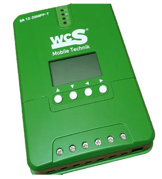 Der WCS Mobile Technik Solarregler SR 12- 20/30/40 MPPT verfügt über ein integriertes LCD Display. Hier können Sie die wichtigsten Daten, wie Batteriespannung in Volt und Solar Ertrag in Ampere ablesen.