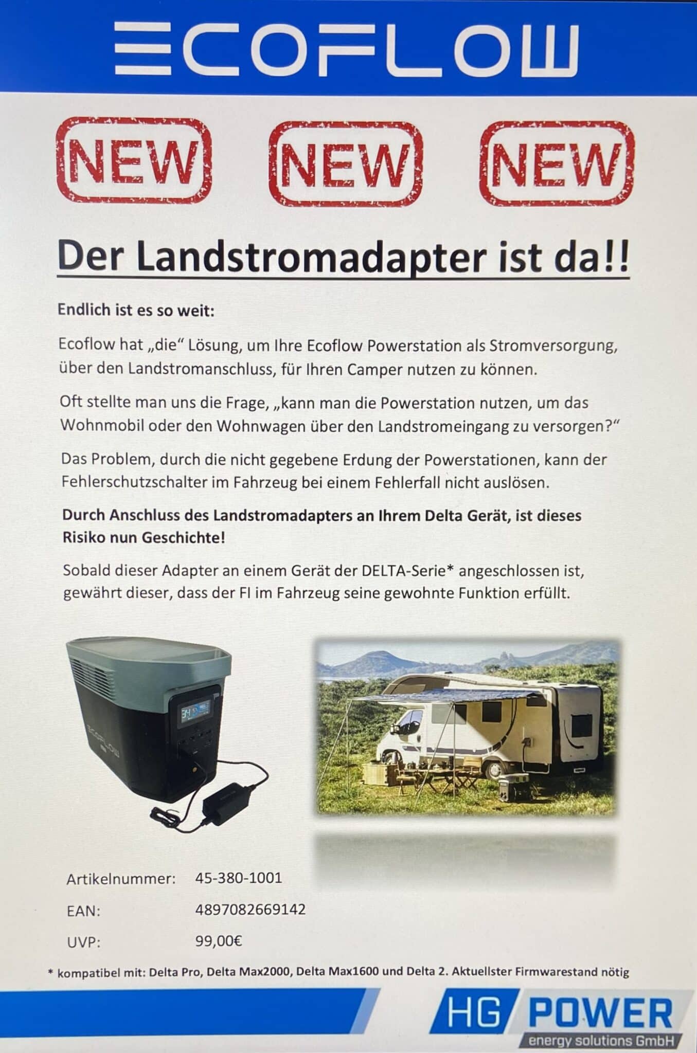 Ecoflow hat „die“ Lösung, um Ihre Ecoflow Powerstation als Stromversorgung, über den Landstromanschluss, für Ihren Camper nutzen zu können.