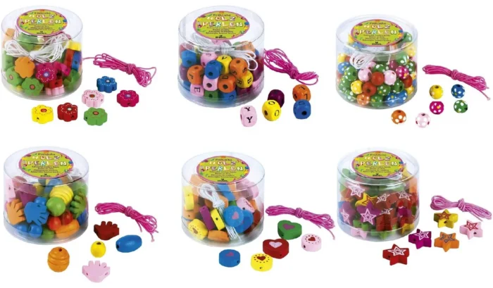 Die kleinen Sets enthalten verschiedene Holzperlen in verschiedenen Farben, die man endlos variieren kann!