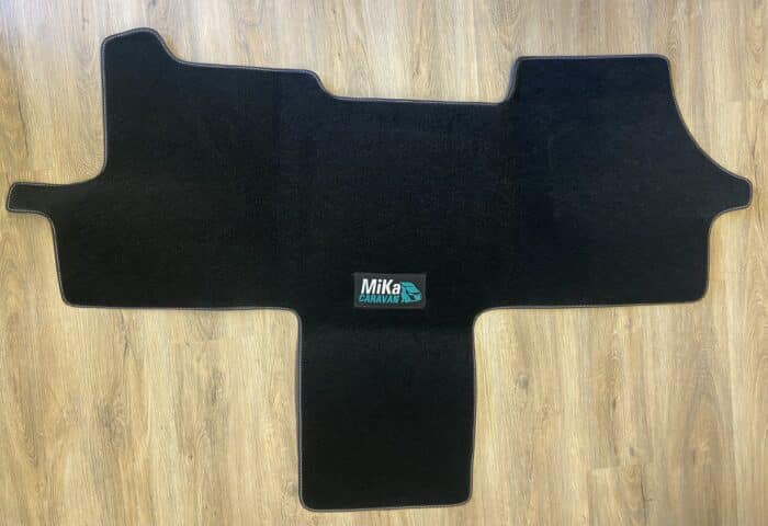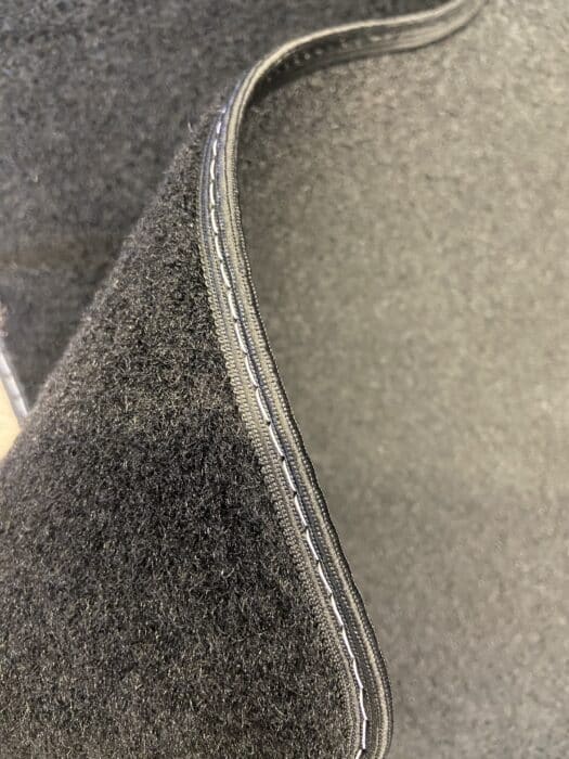 Textilfußmatte für Fiat Ducato 290 mit Bandeinfassung, Ziernaht in weiß mit unserem MiKa Logo!