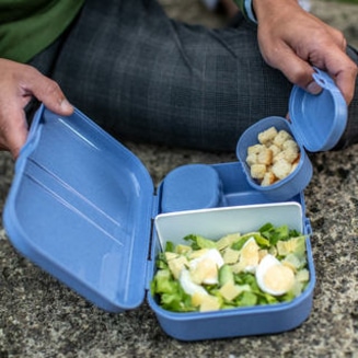 voluminöse Lunchbox • mit Trennsteg • mit Clipverschluss • der praktische Begleiter für Büro, Schule und Ausflüge • ideal auch für Obst • ideale Kombination mit Trinkflasche OASE