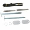 Die Abspannung erfolgt über eine stabile Zugfeder, die die Spannung des Gurts reguliert. Ein Eisenhering gibt den nötigen Halt. Bei Sturmdächern ohne Überstand wird die Öse des Gurtbands über den Dorn des Zeltgestänges gelegt.